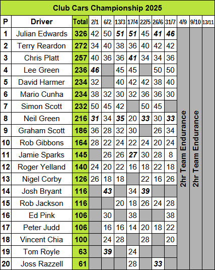 31/07/25: Club Cars Tags: Club Cars Read more articles Previous Post24/07/25: Formula 1 Next Post07/08/25: Sideways GT3